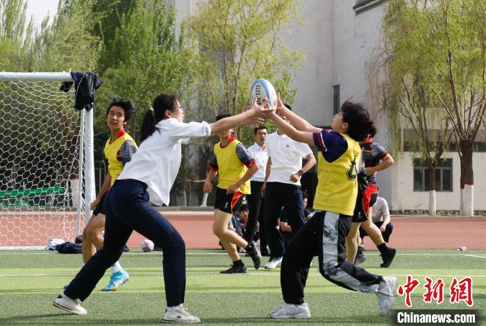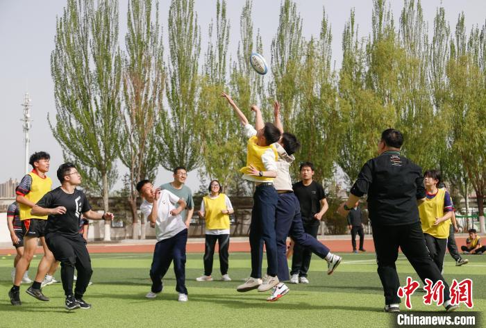 图为西宁学生体验橄榄球运动。中新社记者 马铭言 摄