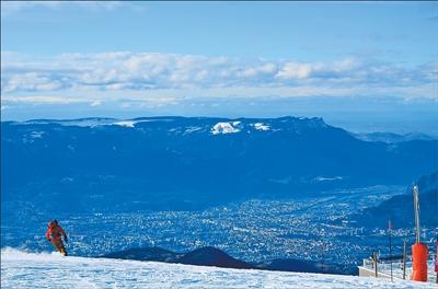 蓬勃发展的中国冰雪产业为波马、卢西诺等法国企业带来发展机遇。图为法国山地运动产业枢纽城市格勒诺布尔附近的尚鲁斯雪场,这里配备有波马厢型缆车,也是卢西诺的重要产品测试场地。记者 尚凯元摄